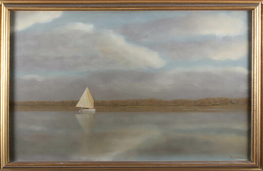 Day 1 featured artists include Emily Hoffmeier, several Robert Stark Jr. oils, works by Anne Ramsdell Congdon, Ralph Cahoon, Martha Cahoon, 4 Thomas Hart Benton etchings, Jan Van Der Waarden, Carles Camoin, Donald Jurney, Brian Coole, George Washington signed “Society of the Cincinnati”, numerous vintage Estate oriental carpets, pair of John & William Cary Terrestrial and Celestial globes and several Cary books and maps, numerous Estate European bronzes, fine collection of Black Forest artifacts, Nantucket baskets include makers Jose Reyes, Sherwin Boyer, Stephen Gibbs, Roland Folger, Bill & Judy Sayle, F.O. Freeman and others. Formal furnishings include Hepplewhite dining chairs, two British Regency pedestal dining tables and a signed Jean Avisse Louis XVI marble top table, plus Stephen Swift contemporary furniture, many antique and vintage American quilts, Nantucket duck and shorebird decoys, British woolies, tea caddies, and much more. 660 Lots