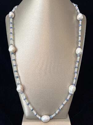 Kyanite, Rainbow Moonstone and 11mm Baroque Pearl Necklace