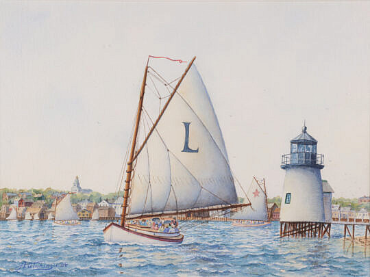 Barbara Capizzo Watercolor on Paper “Rainbow Fleet Rounding Brant Point”