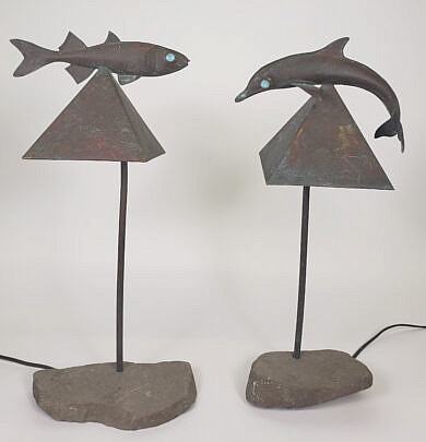 Billy Bowen Patina Brass Bookends, “Copyright 1928 Cape Cod Fisherman”