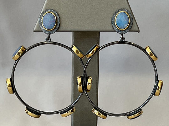 Pair of Citrine, Blue Topaz and Amethyst Earrings
