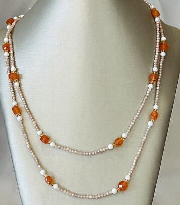 Faceted Carnelian, Smokey Moonstone and Seed Pearl Necklace