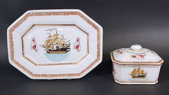 Chinese Export Plate, 18th Century, and One Ironstone Bowl, 19th Century