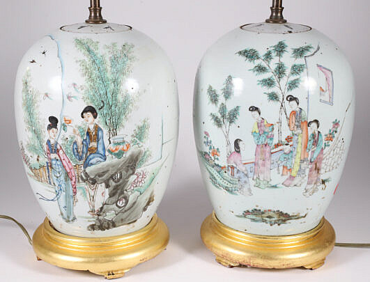 Pair Chinese Ginger Jars Mounted as Lamps