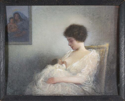 Two Anne Mellin Watercolors on Paper Titled “Happy Family” and “Old South Wharf”