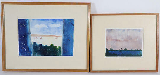 Group Of Two Jerry Carl Watercolors On Paper “Moor Fog Small” and “Moor Fog Larger Than Small”