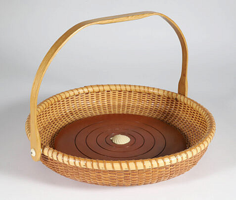 Round Shallow Swing Handle Nantucket Basket, 19th Century