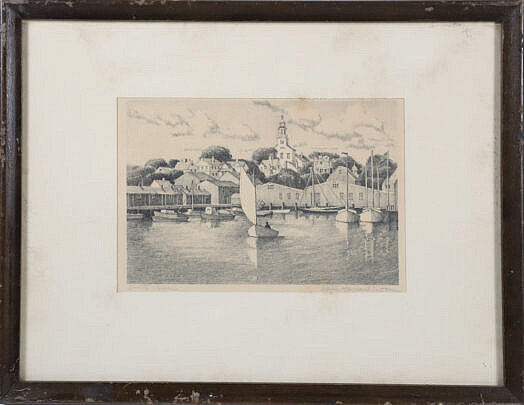 Ruth Haviland Sutton Lithograph “View of the Town of Nantucket from the Moors”