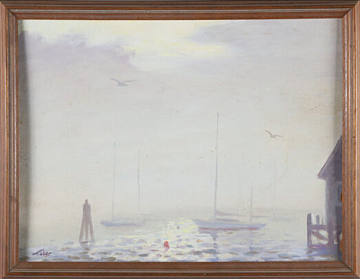 Gerald Taber Oil On Board “Foggy Nantucket Harbor”, 20th Century