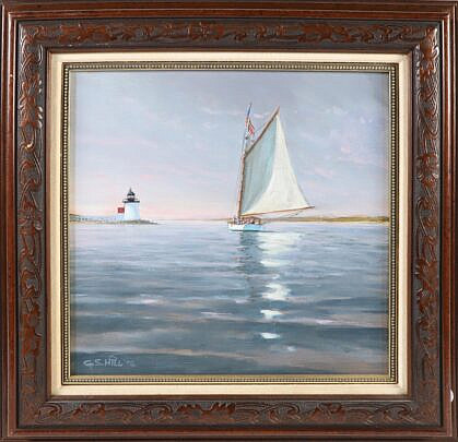 G.S. Hill Oil On Panel “Sunset and The Endeavour Rounding Brant Point”