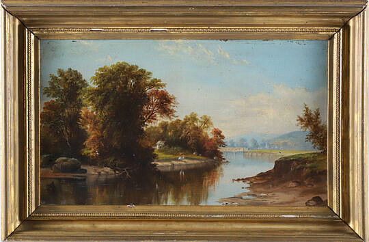 Antique Oil on Artist’s Board “New Hampshire River Landscape”