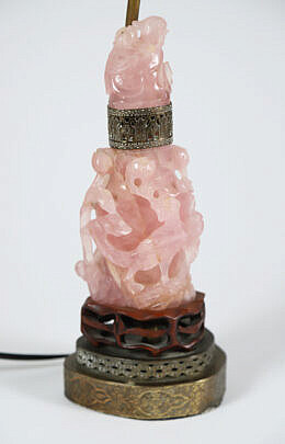 Vintage Chinese Carved Rose Quartz Vase Mounted as a Lamp