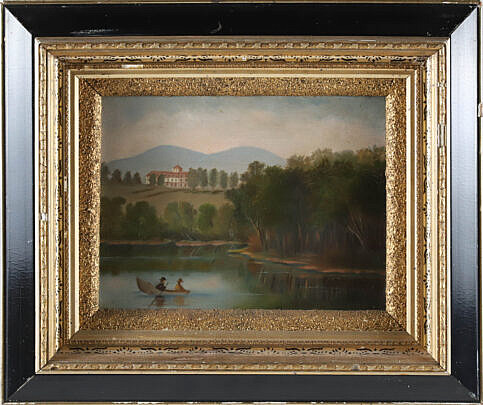 Oil on Artist’s Academy Board “Folk Art New England Landscape”, 19th Century
