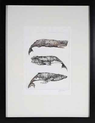David Lazarus Black and White Etching “Three Whale Species”