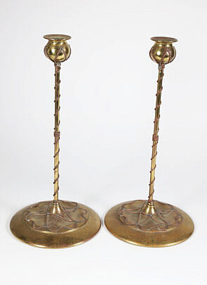 Pair of Jugendstil Brass and Copper Candlesticks, circa 1890s