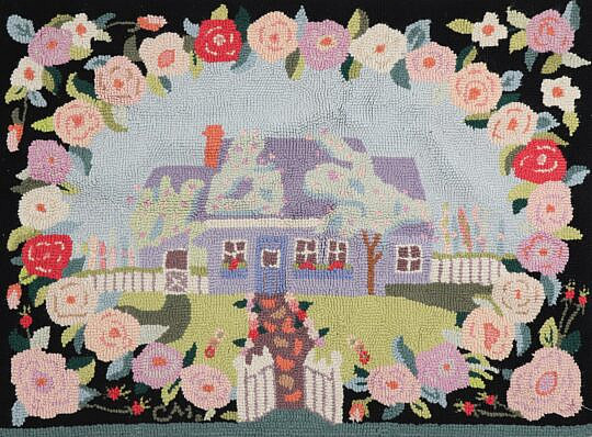 Vintage Claire Murray Hooked Rug Nantucket Rose Covered Cottage