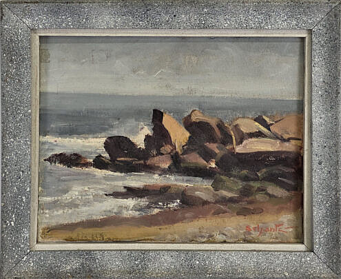 Vintage Oil on Artist Board Cliffside Seascape Painting, 20th century