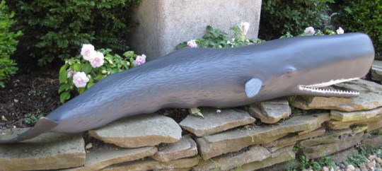 Hand carved and painted wood whale
