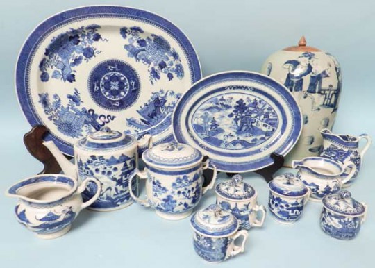 Sampling of blue and white Canton and Nanking china