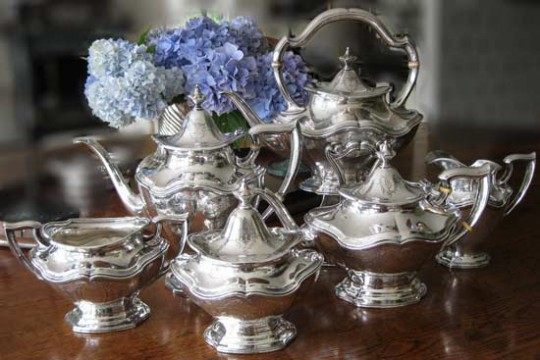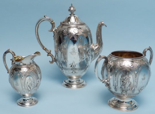 Sterling Silver Engraved Coffee and Tea Service