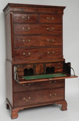 ENGLISH MAHOGANY BUTLER’S DESK CHEST ON CHEST