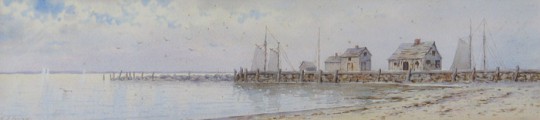 19th Century Watercolor View of Steamboat Wharf