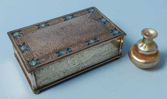Tiffany Bronze and Enamel Box, Favrile Tiffany Miniature Vase