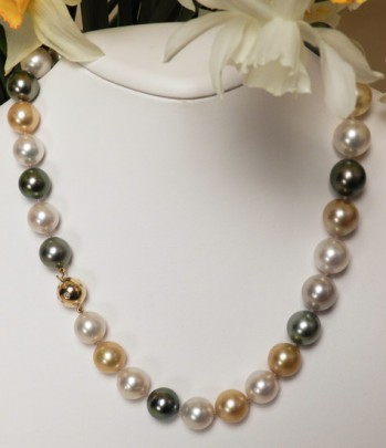 Multicolor South Sea Pearl Necklace in Shades of White, Gold, Silver and Grey
