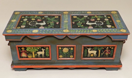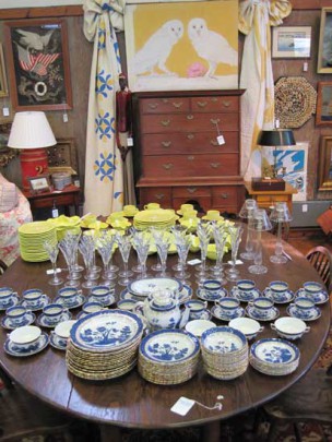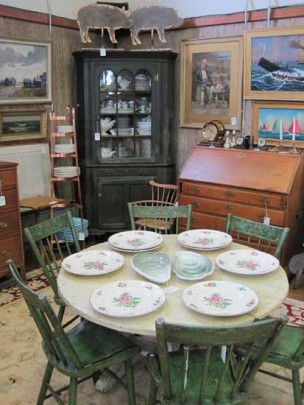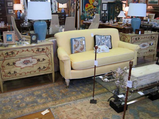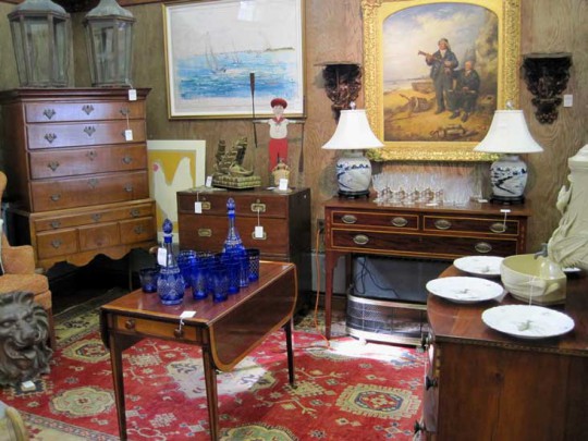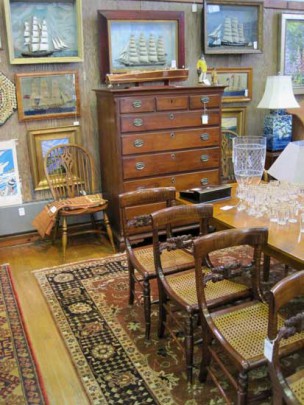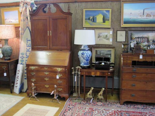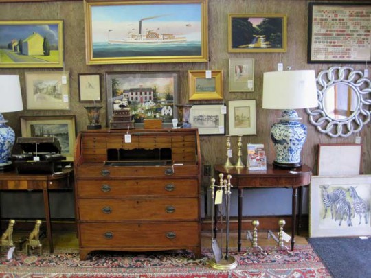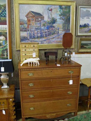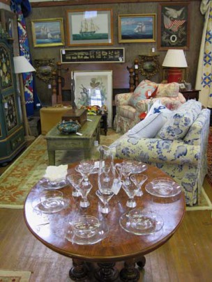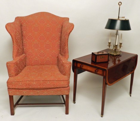 Upholstered Wing Chair, Bouillotte Lamp, Tea Caddy, Pembroke Table