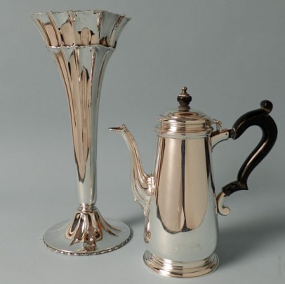 Tiffany & Co. Sterling Silver Trumpet Vase, Sterling Silver Coffee Pot