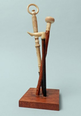 Pair of Asian Figural Brackets, Two Nanking Shallow Bowls