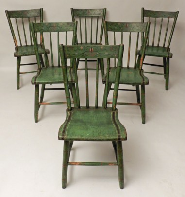 Set of Six Pennsylvania Plank Seat Dining Chairs