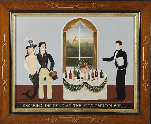 Ralph Cahoon Oil on Masonite “Shocking Incident at the Ritz Carlton Hotel”