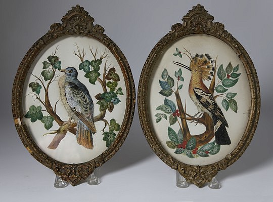 Pair of Framed Watercolor and Cut Paper Pictures of Birds