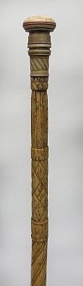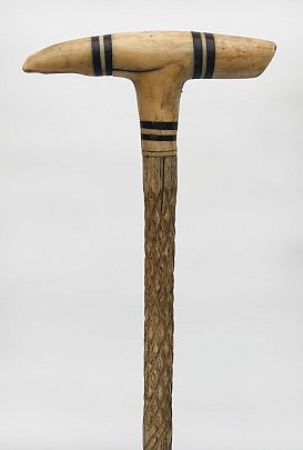 Whaleman Carved Whale Ivory and Whalebone Walking Stick, Mid 19th Century