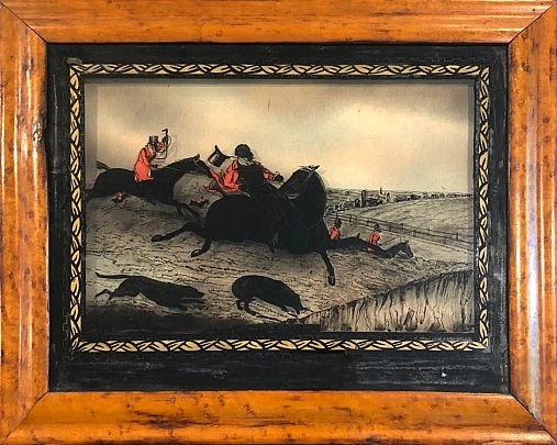 19th Century English Reverse Painting on Glass of a Hunting Scene “Going into a Gravel Pit”