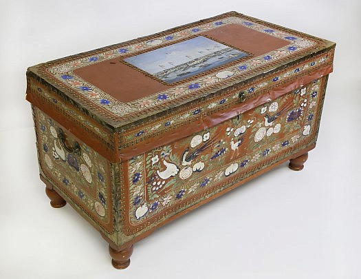 Chinese Export Decorated Leather Camphorwood Trunk