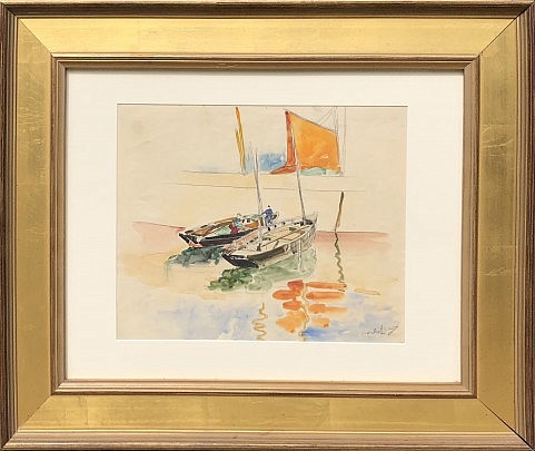 Richard Hayley Lever Watercolor on Paper “Two Dories Docked”