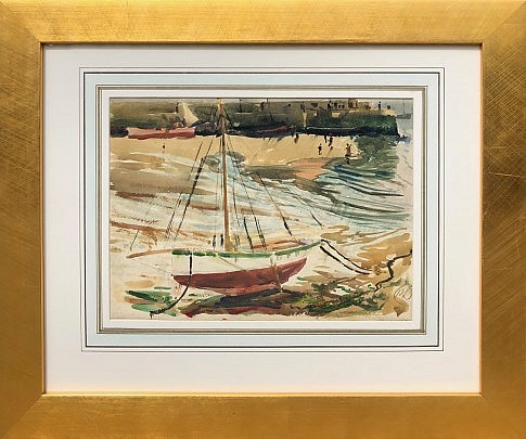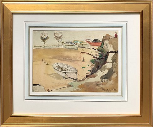 Richard Hayley Lever Watercolor on Paper “Beach Boats and Children at St. Ives, Cornwall, England, 1903”