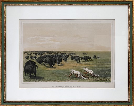 George Catlin Hand Colored Lithograph “Buffalo Hunt Under the White Wolf Skin”