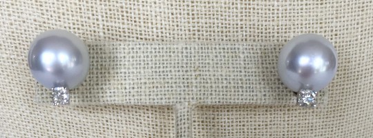 Fine Pair of White South Sea Pearl and Diamond Earrings