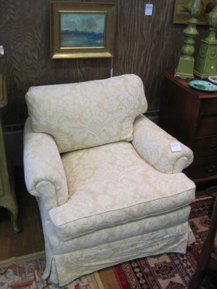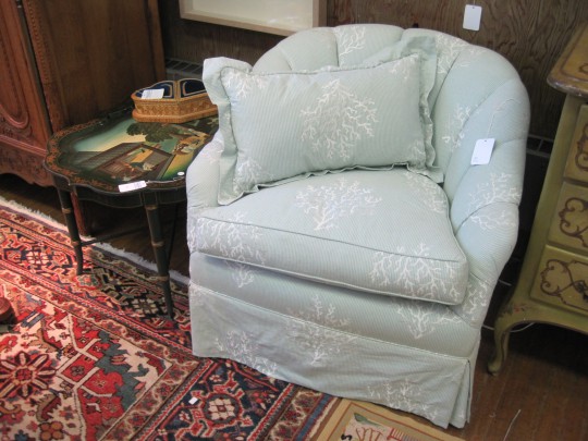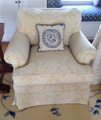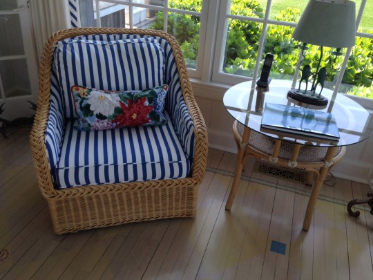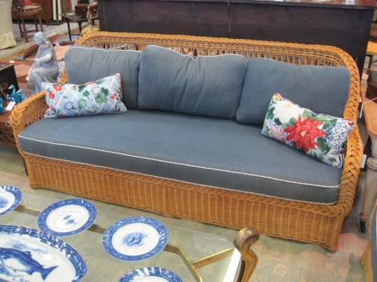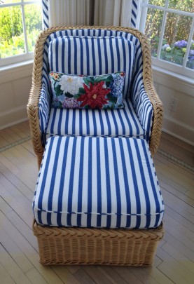 Wicker Armchair and Ottoman with Upholstered Cushions