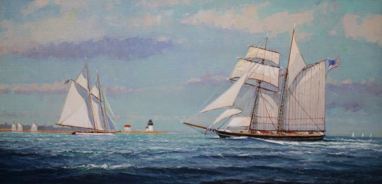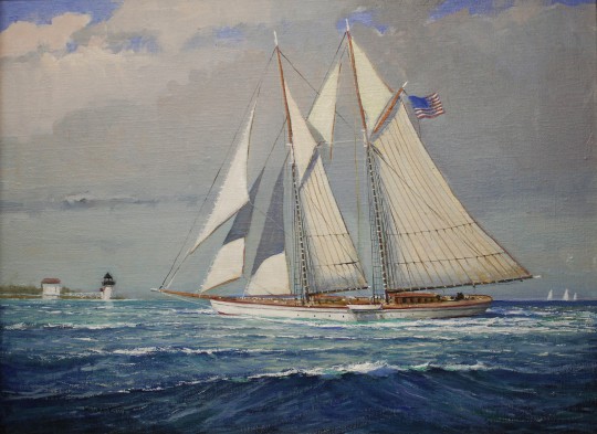 William W. Lowe Oil on Linen “Schooner Heading Home, Nantucket”