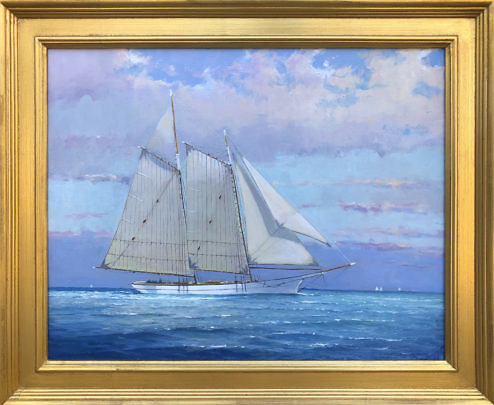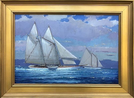 William Lowe Oil on Linen “Fresh Breeze Nantucket Schooners”