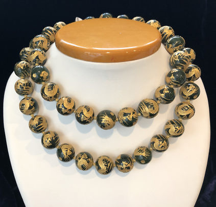 16mm Green Canadian Bead Engraved with Gold Necklace
