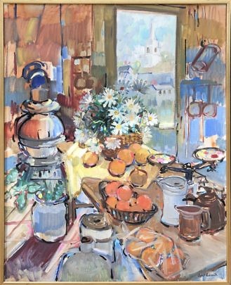 Sybil Goldsmith Oil on Canvas “View of the First Congregational Church Through the Window of a Nantucket Kitchen”