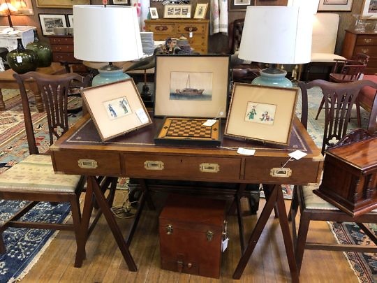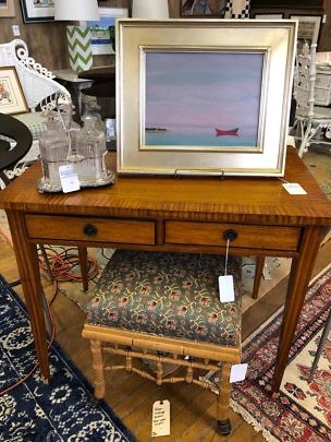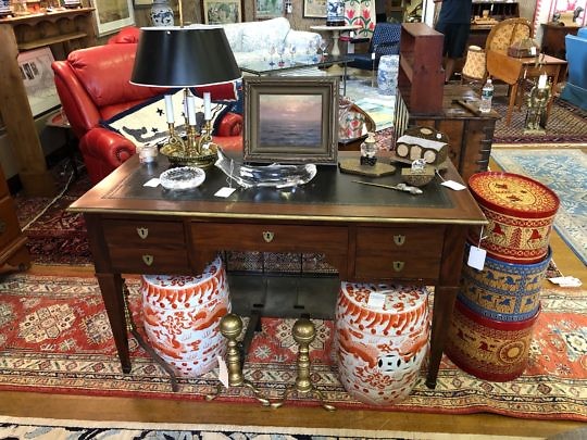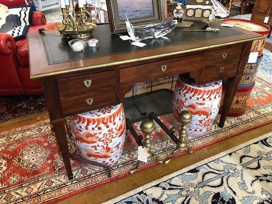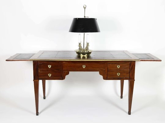 19th Century French Fruitwood Louis Phillipe Desk and Vintage Brass Bouillotte Lamp