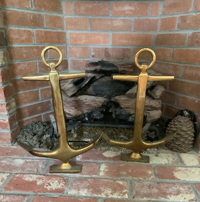 Pair of Brass Anchor Andirons