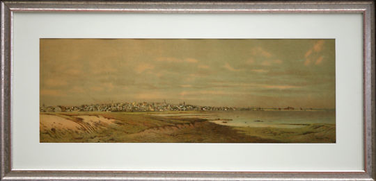Wendell Macy Stone Lithograph Matted and Framed “Nantucket Town From Monomoy 1881”