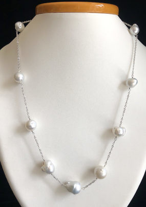 13mm x 11mm White South Sea Baroque Pearl Tin Cup Necklace